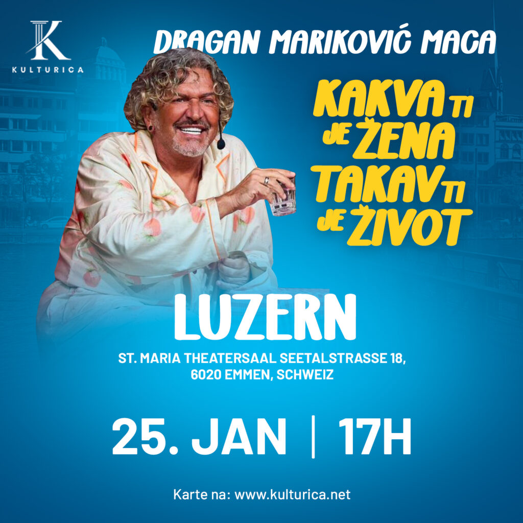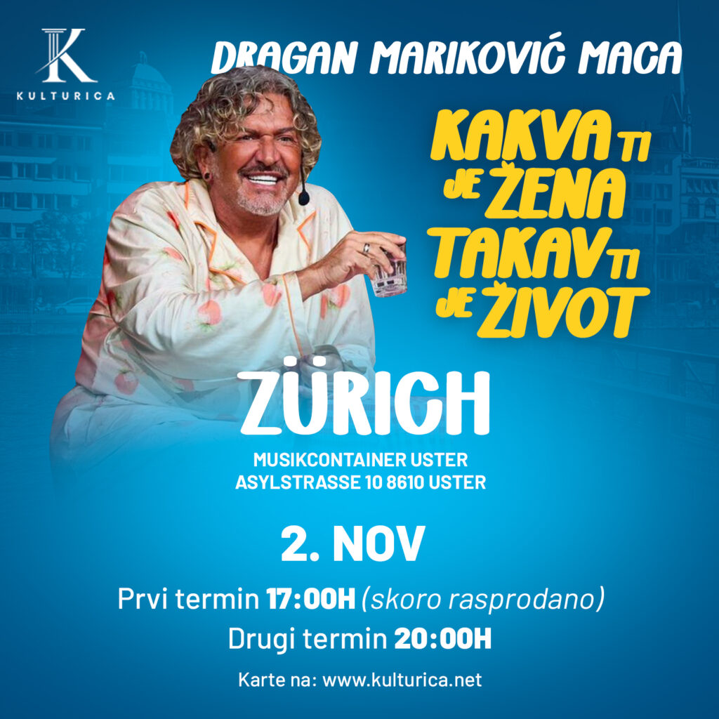 Dobrodošli na stranicu udruženja “Kulturica”! Naša misija je organizovanje kvalitetnih kulturnih događaja za naše ljude u dijaspori u Švicarskoj. Naša ponuda uključuje predstave, stand up nastupe i druge zanimljive događaje naših najboljih glumaca i umjetnika sa čitavog Balkana.